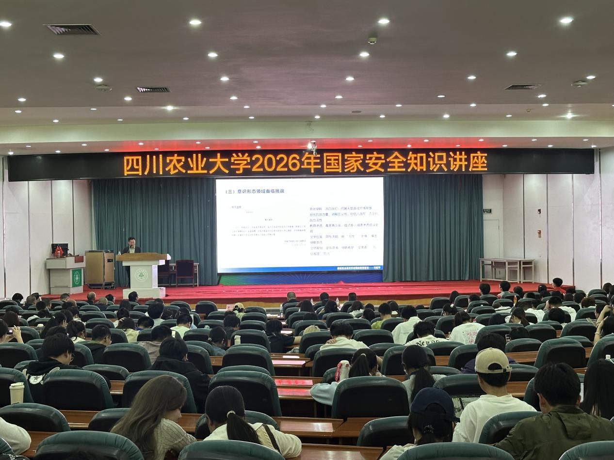 4月14日,学校保卫处、学生处联合雅安市公安局,特邀陕西师范大学国家安全学教研室主任王刚博士,在雅安校区十教二楼报告厅举办了“认清风险挑战,增强忧患意识,争做总体国家安全观坚定践行者”主题讲座。全校近600名师生到场参与。王刚紧扣总体国家安全观核心要义,结合近年典型案例,系统阐释了新时代国家安全的丰富内涵,深入剖析了我国国家安全面临的复杂风险与挑战,明确了师生群体维护国家安全的法定责任与现实意义,引导大家牢固树立国家安全意识,自觉成为总体国家安全观的坚定践行者。